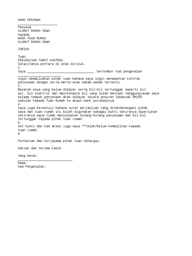Notis Tamat Kontrak Sewa Rumah Pdf